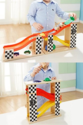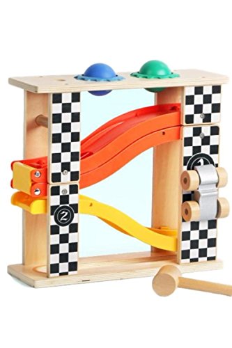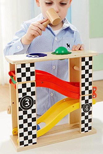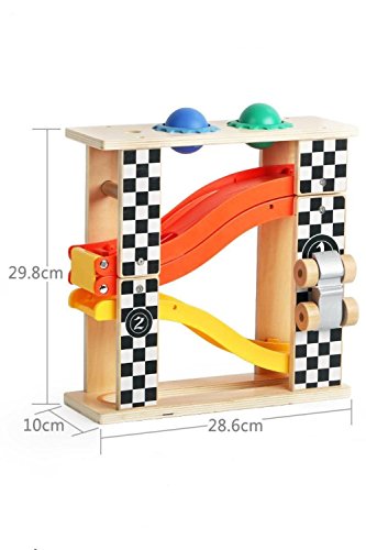 (SCGEHA) 1台2役 木製 スロープトイ 玉転がし 車 ミニカー 滑り台 ボール ハンマー 木のおもちゃ 知育玩具 子ども