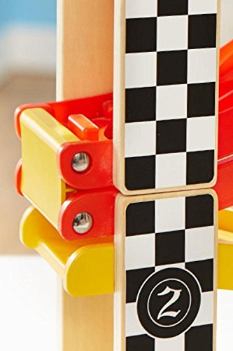 - カラフルなレールとボールにチェッカーフラッグ模様の柱。ポップなデザインがパッと見ただけで小さなお子さまの興味をひきつけます。部分的に天然目を使用しているので木のぬくもりも感じられるアイテムです。
