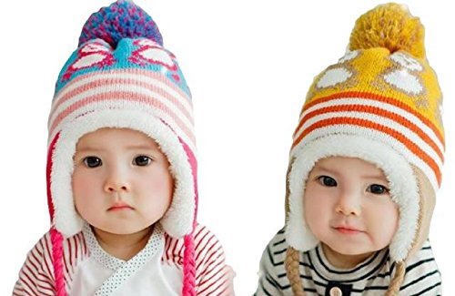 【SCGEHA】赤ちゃん ニット帽 あったか モコモコ 耳あて ボンボン ボア ひよこ カラフル 秋冬 防寒 5色 耳まですっぽりあったか帽子♪(レッド)