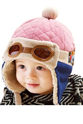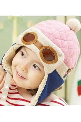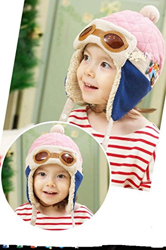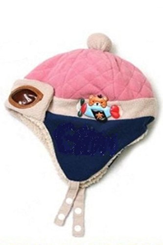 (SCGEHA) ベビー キッズ パイロット 帽子 キャップ フリース 防寒 もこもこ 耳あて 4カラー (ピンク)