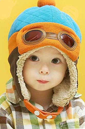 (SCGEHA) ベビー キッズ パイロット 帽子 キャップ フリース 防寒 もこもこ 耳あて 4カラー (ブルー)