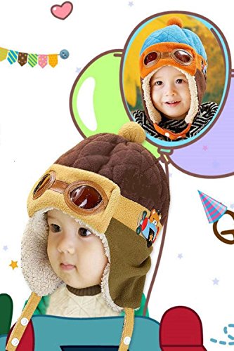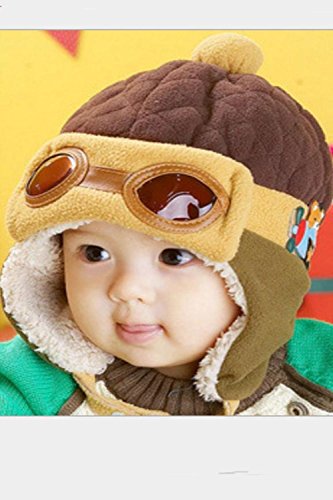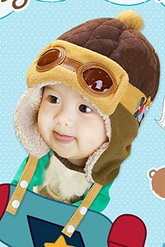(SCGEHA) ベビー キッズ パイロット 帽子 キャップ フリース 防寒 もこもこ 耳あて 4カラー (ブラウン)