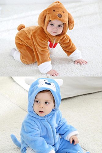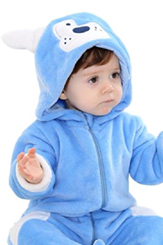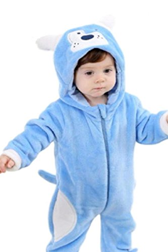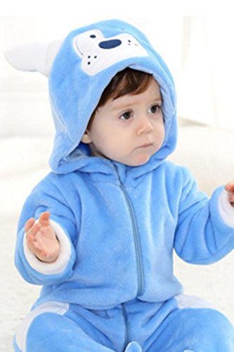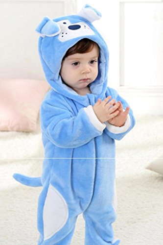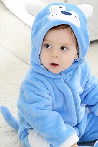 (SCGEHA) 赤ちゃん ロンパース 犬 動物 着ぐるみ カバーオール オールインワン ベビー 防寒 戌年 耳 しっぽ付き(ブルー/100)