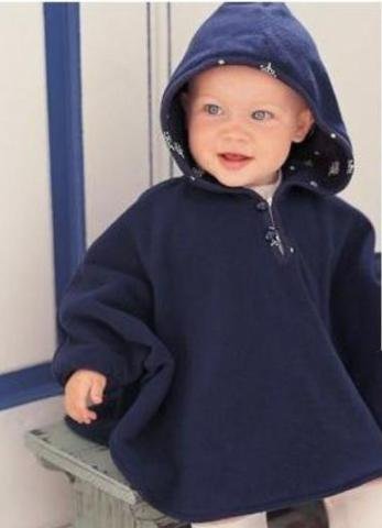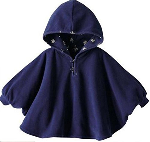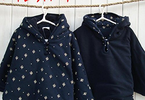 【SCGEHA】ふわふわ リバーシブル ポンチョ フード お袖つき 男の子 女の子 兼用 ベビー 3カラー 2サイズ 動きやすくて赤ちゃんうれしい♪ (ネイビー/80)