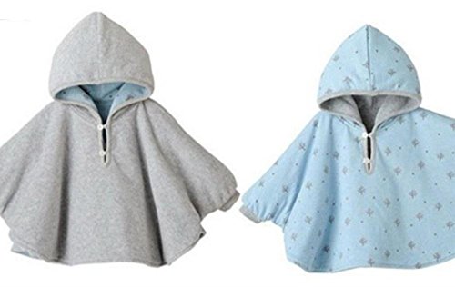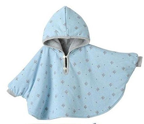 【SCGEHA】ふわふわ リバーシブル ポンチョ フード お袖つき 男の子 女の子 兼用 ベビー 3カラー 2サイズ 動きやすくて赤ちゃんうれしい♪ (スカイブルー/80)