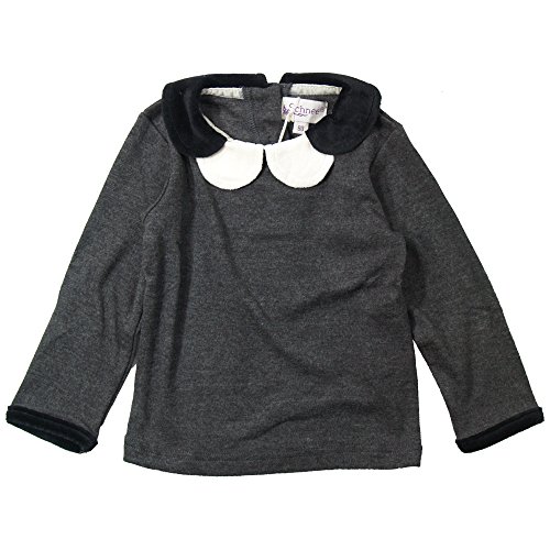 《春秋冬対応》SCHNEE(スネー) フライス天竺衿ベロアロンT 110cm /チャコール NO.F-661155