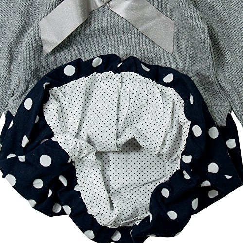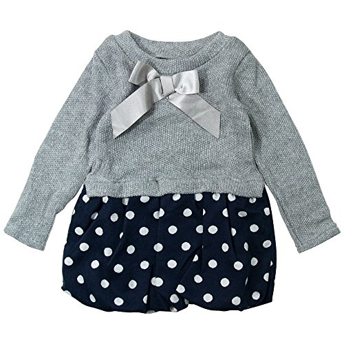 《春秋冬対応》SCHNEE(スネー) リブニットと水玉ジャガードワンピース 120cm/杢グレー NO.F-661065
