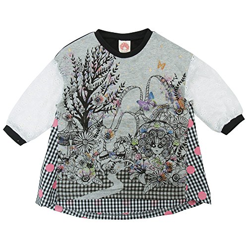 【H28年春物】 SCOLAR(スカラ) ミニ裏毛+布帛+綿レース袖オーバーレースワンピース 120cm/杢グレー NO.CH-16SP-SC11