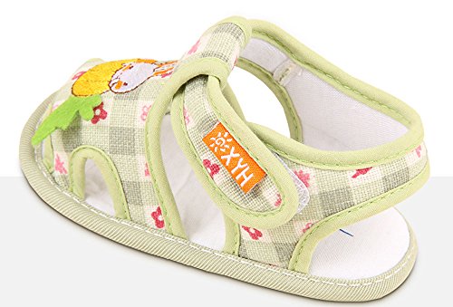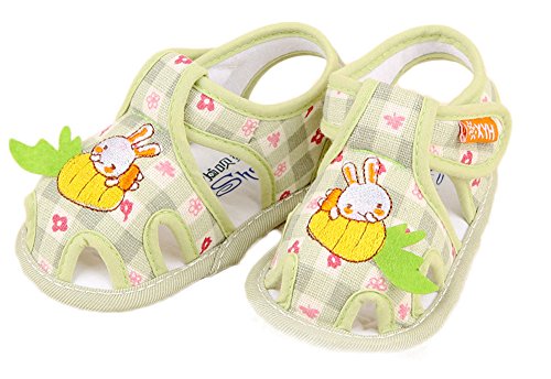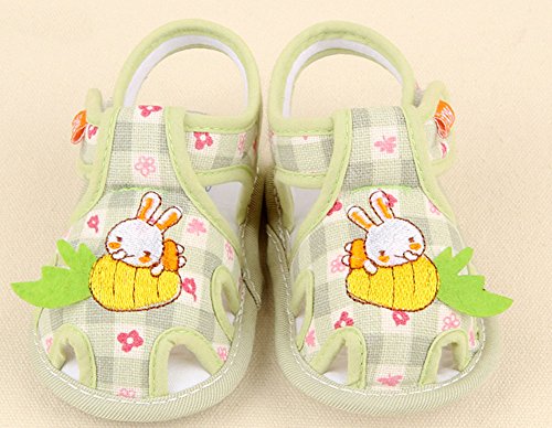 【SEBLES】ベビー 赤ちゃん 女の子 男の子 ファーストシューズ ユニセックス 靴 サンダル チェック ソフトカラー うさぎ 兎 ラビット コットン 綿 夏(グリーン,13)