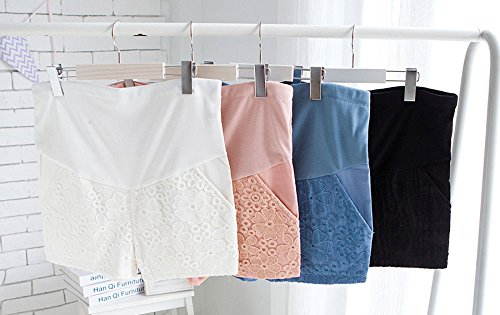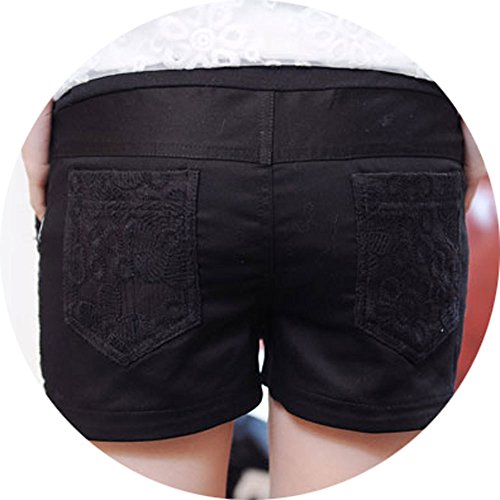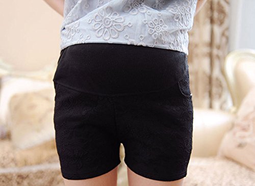 【SEBLES】マタニティ 妊婦 妊婦服 ファッション ショートパンツ 夏 初夏 半ズボン 無地 コットン レース 綿 刺繍 ポケット(ブラック,XXL)