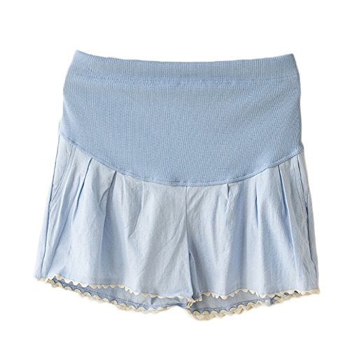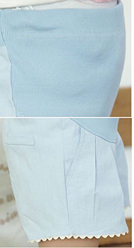 【SEBLES】マタニティ 妊婦 妊婦服 ファッション ショートパンツ 夏 初夏 半ズボン 無地 コットンリネン 綿麻 ポケット(ブルー,XXL)