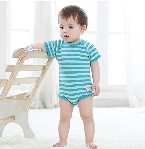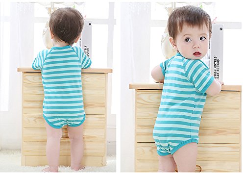 【SEBLES】ベビー服 新生児 1歳 ロンパース パジャマ 半袖 ブルマ ボタン 綿 コットン 柔らか 動きやすい 赤ちゃん 春 夏 無地 ユニセックス 可愛い ボーダー くま ベア(タイプE,73cm)