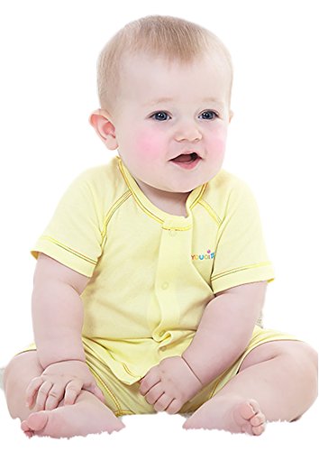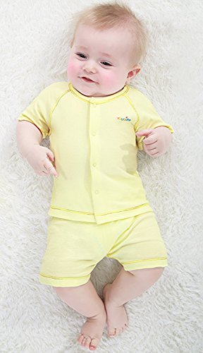 【SEBLES】ベビー 赤ちゃん パジャマソフトカラー コットン 綿 オーガニック 上下 前開き 春 秋 半袖 半袖 七分袖 パステルカラー 可愛い パジャマ(イエロー半袖,66cm)