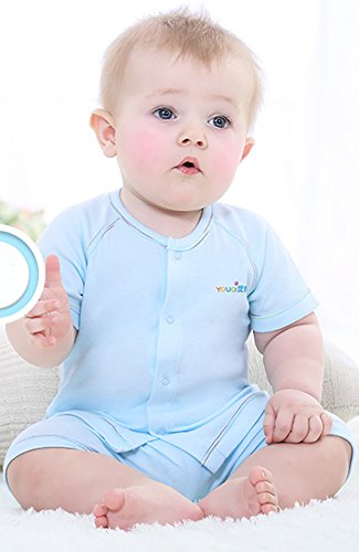 【SEBLES】ベビー 赤ちゃん パジャマソフトカラー コットン 綿 オーガニック 上下 前開き 春 秋 半袖 半袖 七分袖 パステルカラー 可愛い パジャマ(ブルー半袖,100cm)