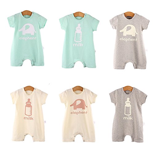 【SEBLES】ベビー 赤ちゃん ロンパース 肌着 半袖 無地 プリント コットン 綿 ナチュラル素材 初夏 夏 スナップ 象 ミルク 可愛い ユニセックス 男の子 女の子(タイプF,90cm)