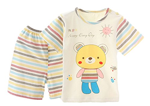 【SEBLES】ベビー 赤ちゃん 部屋着 半袖 短パン セット コットン 綿 オーガニック ソフトカラー 新生児 可愛い プリント キャラクター ボーダー ユニセックス 男の子 女の子(イエロー,90cm)