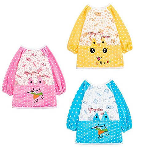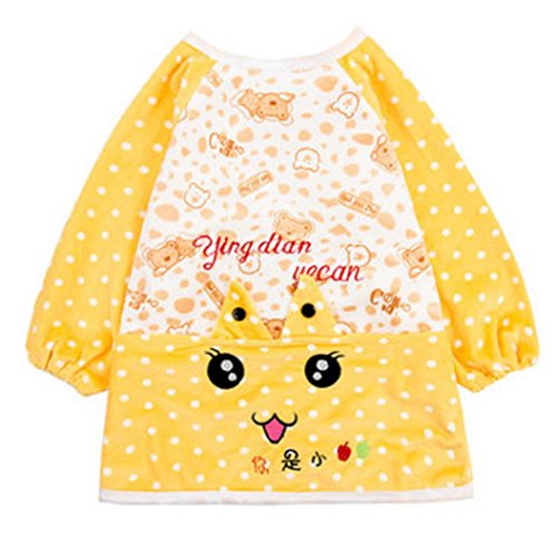 【SEBLES】 ベビー キッズ スモック ドット うさぎ ねこ エプロン 防水 幼稚園 0歳 ~ 3歳 全6色 サイズ M L XL クロスセット (イエロー,L)