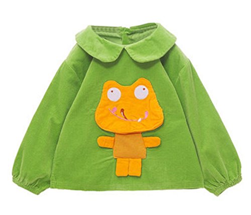 【SEBLES】 キッズ ベビー かえる キュート エプロン スモック 幼稚園 お絵かき 全3色 サイズ 75 80 90 100 クロスセット (グリーン,80)