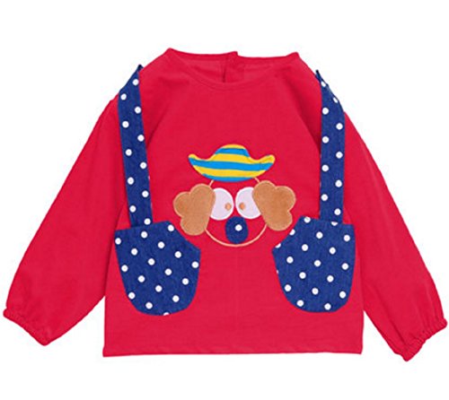 【SEBLES】 キッズ ベビー キュート エプロン スモック 幼稚園 お絵かき 全7種 サイズ 80 90 100 110 クロスセット (A:レッド,90)