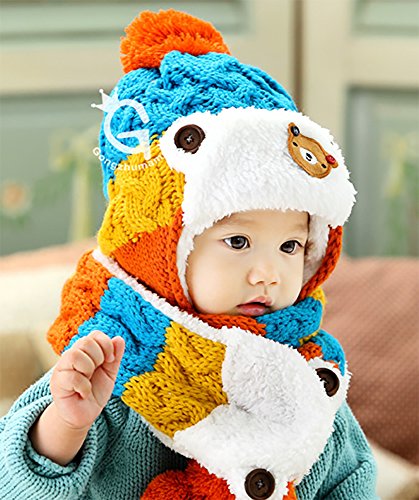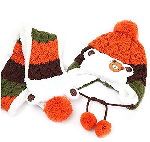 【SEBLES】ベビー服 ニット帽 耳当て マフラー セット ボンボン もこもこ 可愛い 赤ちゃん キッズ 帽子 6ヶ月-4歳(オレンジ)