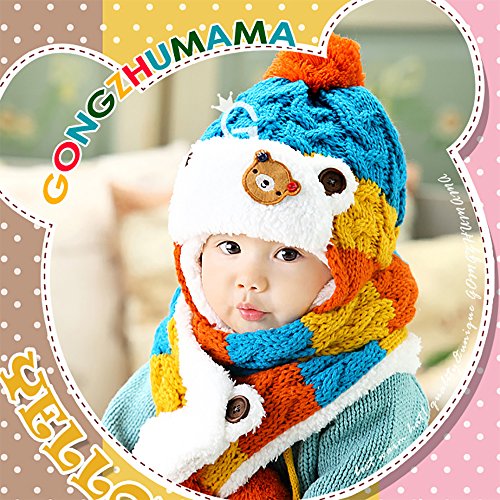 - 可愛いクマちゃんモチーフのニット帽&マフラーのセットです。