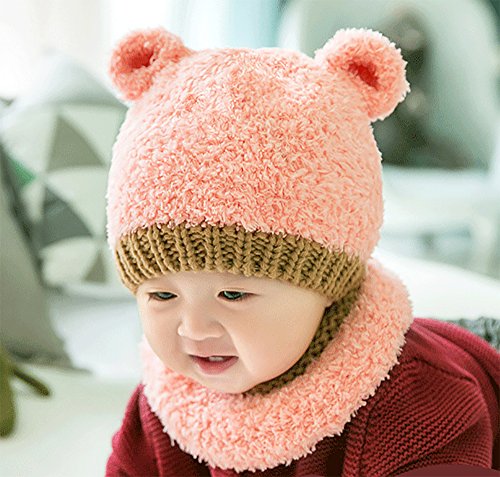 約6ヶ月~2歳まで対応の、可可愛いプチ耳付きニット帽&ネックウォーマーのセットです。
