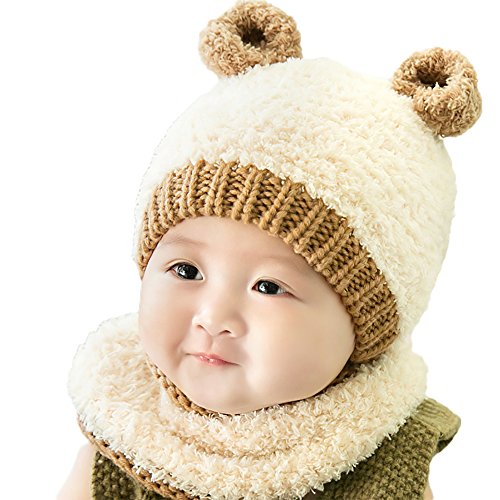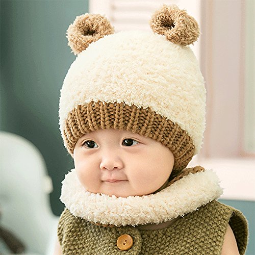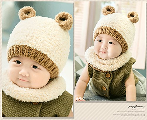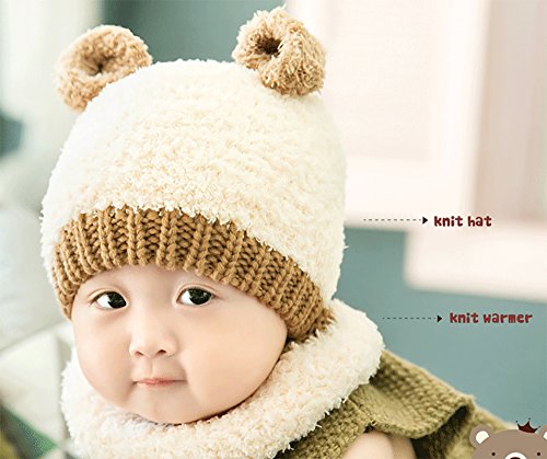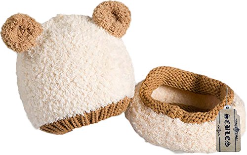 【SEBLES】ベビー服 クマちゃん 耳付き ニット帽 ネックウォーマー セット もこもこ あったか やわらか 帽子 6ヶ月-2歳(オフホワイト)