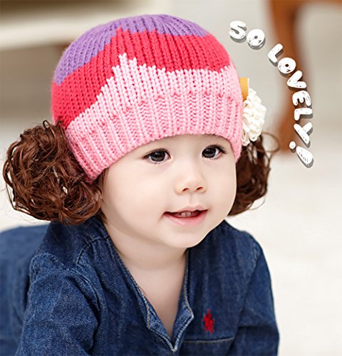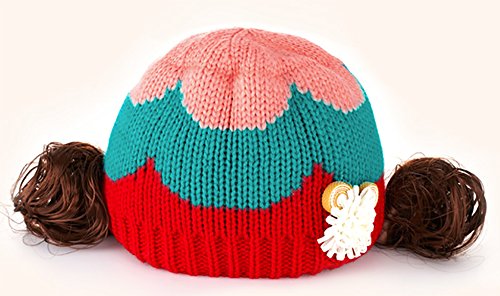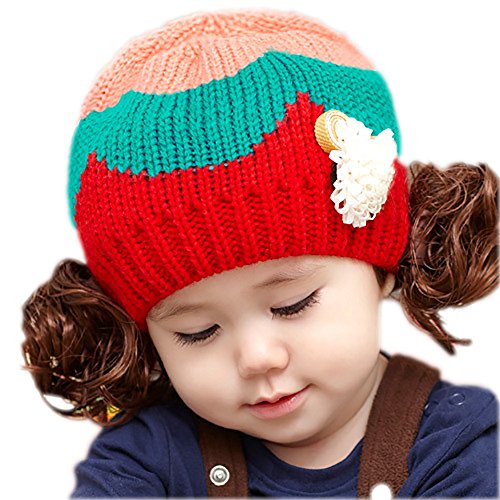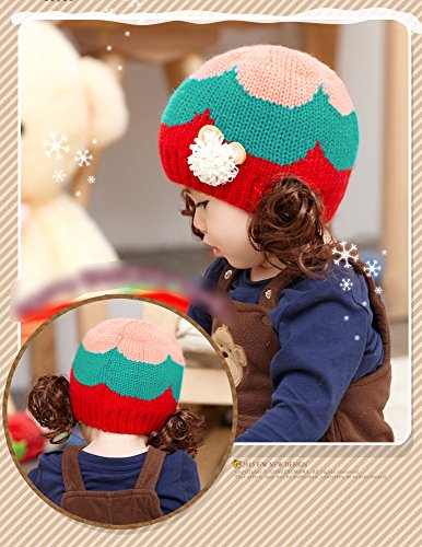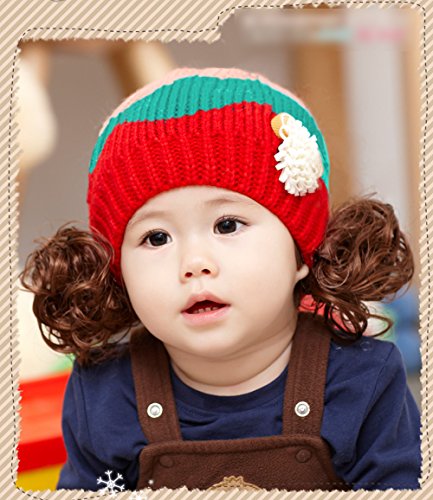 【SEBLES】ベビー服 ニット帽 カール ウィッグ付 女の子 可愛い 秋冬 赤ちゃん帽子 6ヶ月-3歳(レッド)