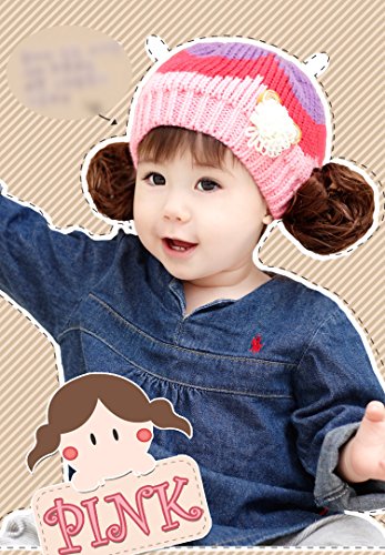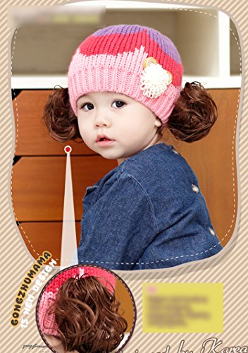可愛いカールの人口の付け毛がついたニット帽です。可愛い女の子にカールをつけて♪