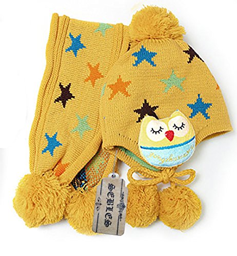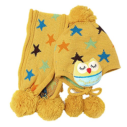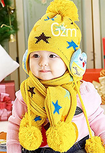 【SEBLES】ベビー服 ニット帽 マフラー アクセサリー あったか 防寒 冬 ボンボン 8ヶ月~4歳 キッズ 赤ちゃん(イエロー)
