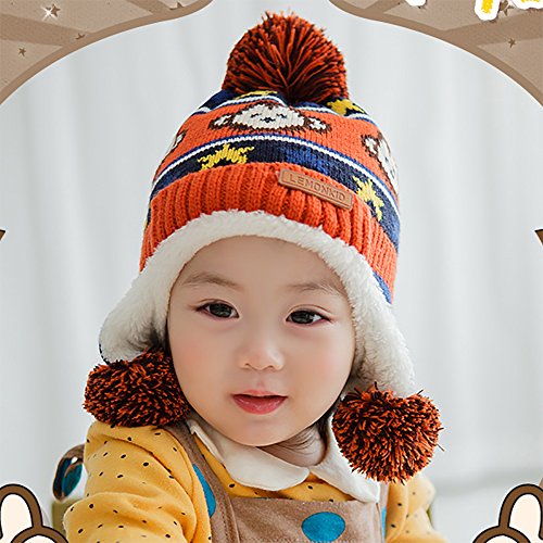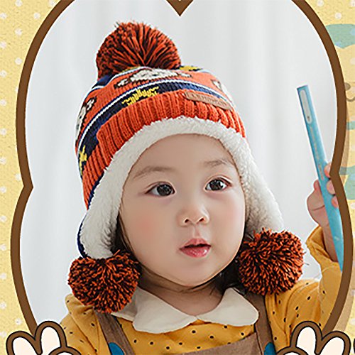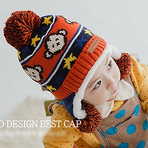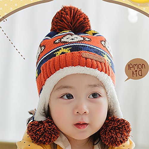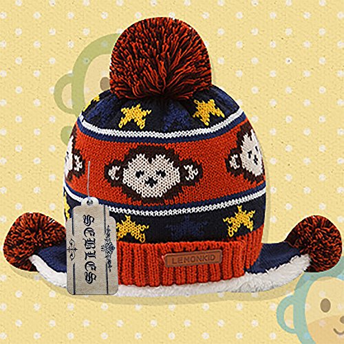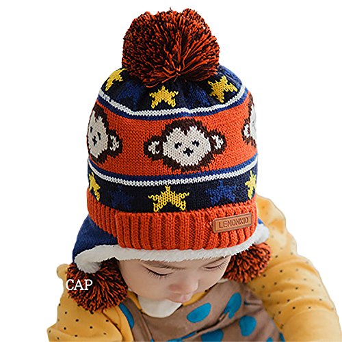 【SEBLES】ベビー服 ユニセックス 耳当て ニット帽 あったか 防寒 モンキー サル 猿 可愛い 10ヶ月~4歳(オレンジ)