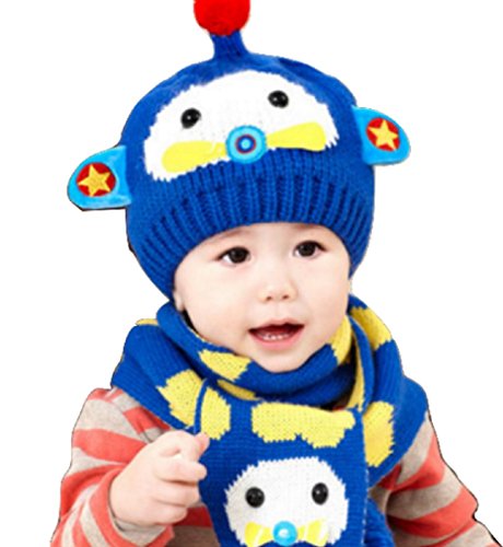【SEBLES】 ベビー キュート ニット 帽 マフラー 2点 セット 赤ちゃん 6カ月 ~ 4歳 全6色 サイズ 46cm ~ 52cm クロスセット (ブルー)
