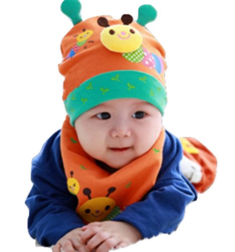 【SEBLES】 ベビー キュート 帽子 よだれかけ お揃い セット 赤ちゃん 新生児 全5色 サイズ 34cm ~ 43cm クロスセット (オレンジ)