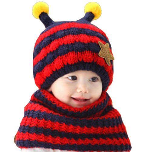 【SEBLES】 ベビー ミツバチ キュート ニット 帽 スヌード 2点 セット 赤ちゃん 6カ月 ~ 4歳 全6色 サイズ 46cm ~ 52cm クロスセット (レッド)