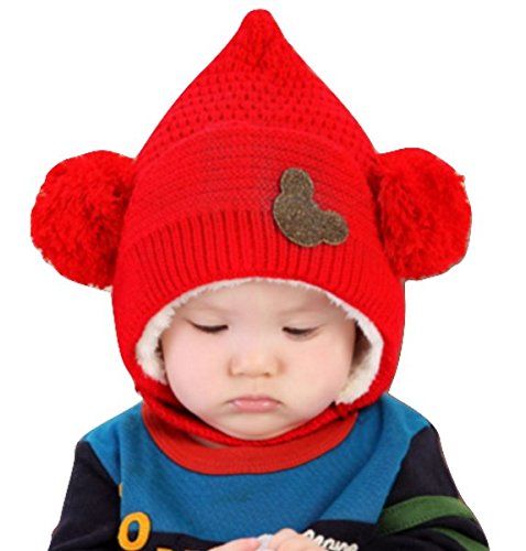 【SEBLES】 ベビー とんがり キュート ニット 帽子 赤ちゃん 3カ月 ~ 8カ月 全5色 サイズ 44cm ~ 48cm クロスセット (レッド)