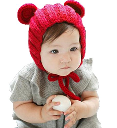 【SEBLES】 ベビー くま みみ 耳 キュート ニット帽 赤ちゃん 新生児 ~ 3歳 全3色 サイズ 42cm ~ 52cm クロスセット (レッド)