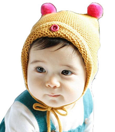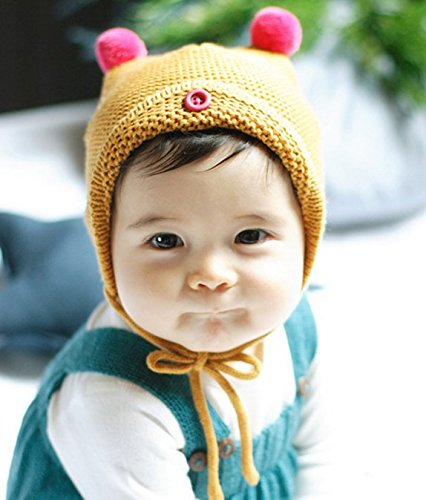 【SEBLES】 ベビー ボタン ワンポイント キュート ニット帽 赤ちゃん 3カ月 ~ 3歳 全3色 サイズ 42cm ~ 52cm クロスセット (イエロー)