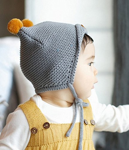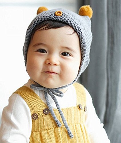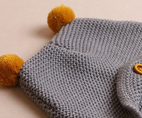 【SEBLES】 ベビー ボタン ワンポイント キュート ニット帽 赤ちゃん 3カ月 ~ 3歳 全3色 サイズ 42cm ~ 52cm クロスセット (グレー)