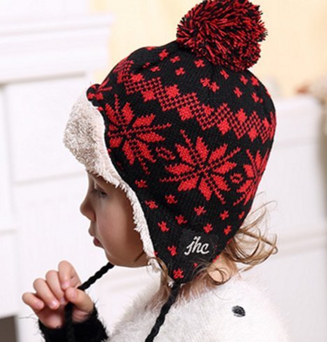 【SEBLES】 ベビー ノルディック ウィンター キュート ニット帽 赤ちゃん 0カ月 ~ 3歳 全3色 サイズ 48cm クロスセット (ブラック)