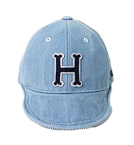【SEBLES】ベビー 赤ちゃん 帽子 キャップ happy 野球帽 デニム 日差し UV 50cm 1歳 2歳 ワッペン ロゴ ユニセックス 男の子 女の子(ライトブルー)