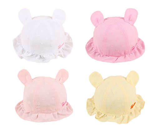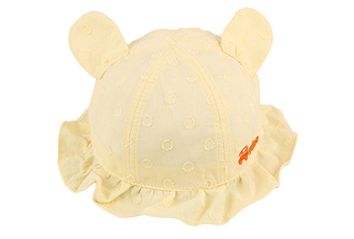 【SEBLES】ベビー 赤ちゃん 帽子 ハット フリル 丸 子ども 子供 ドット 耳付き ソフトカラー 無地 コットン UV あごゴム 春 夏 秋 女の子 可愛い(イエロー,44cm)