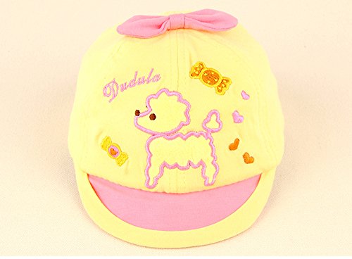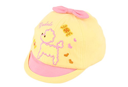 【SEBLES】ベビー 赤ちゃん 帽子 キャップ リボン 丸 子ども 子供 コットン 綿 犬 ワッペン マスコット 春 夏 秋 女の子 男の子 ユニセックス 可愛い(イエロー,46cm)
