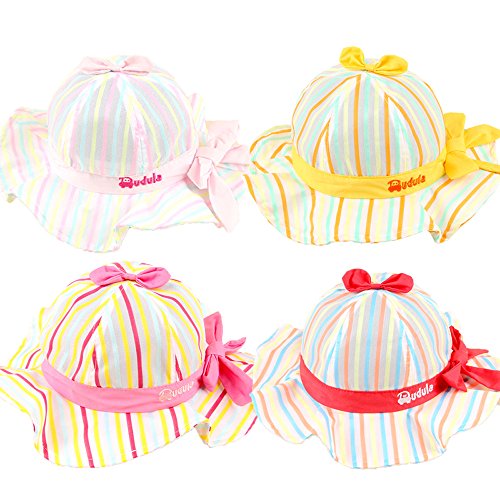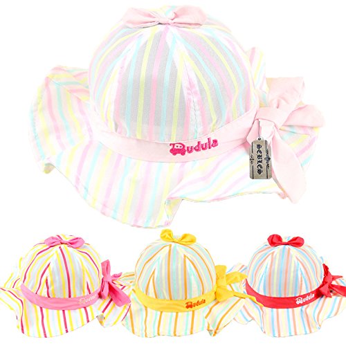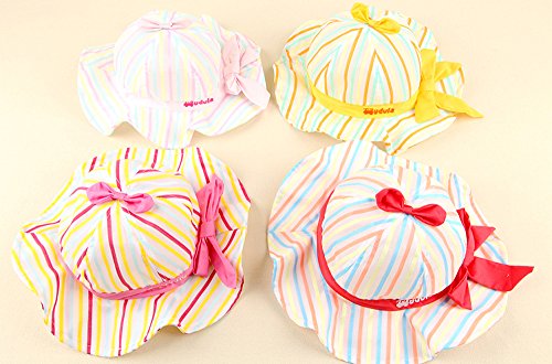【SEBLES】ベビー 赤ちゃん 帽子 ハット フリル 丸 子ども 子供 ポリエステル リボン エレガント ストライプ カラフル 春 夏 秋 女の子 男の子 ユニセックス 可愛い(タイプD,50cm)