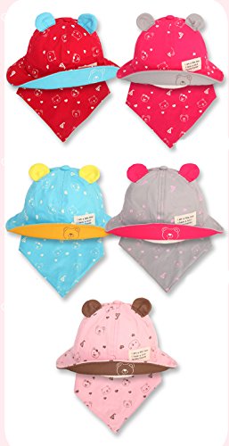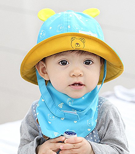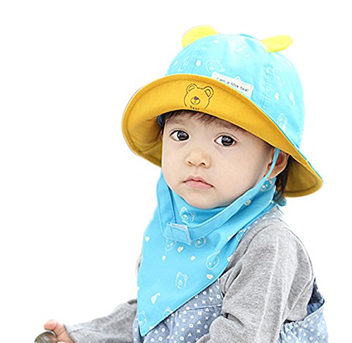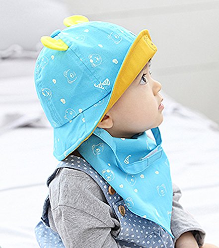【SEBLES】ベビー 赤ちゃん 帽子 スタイ セット ハット サファリハット 子ども 子供 日差し UV プリント コットン 綿 熊 くま ベア 耳 春 夏 秋 ユニセックス 男の子 女の子(ライトブルー)