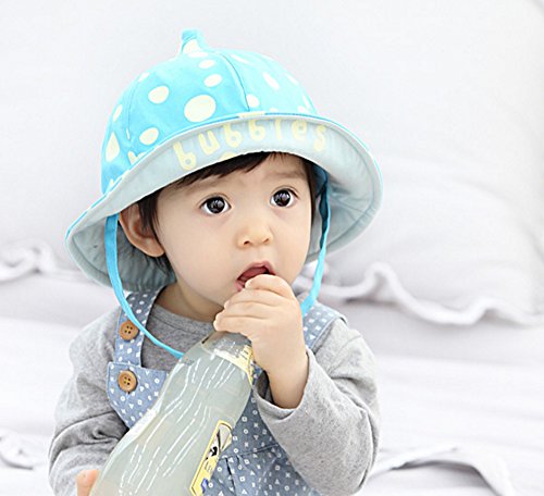 【SEBLES】ベビー 赤ちゃん 帽子 ハット サファリハット とんがり あご紐 子ども 子供 日差し UV プリント コットン 綿 ドット ロゴ 春 夏 秋 ユニセックス 男の子 女の子(ライトブルー)