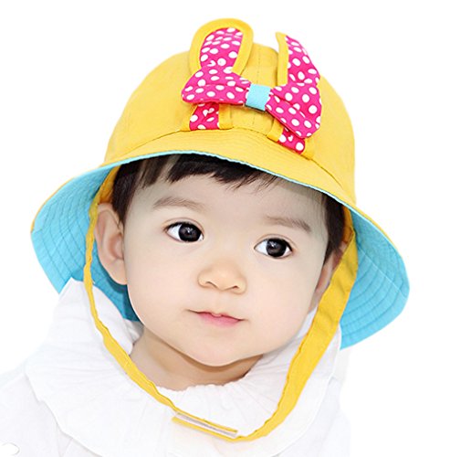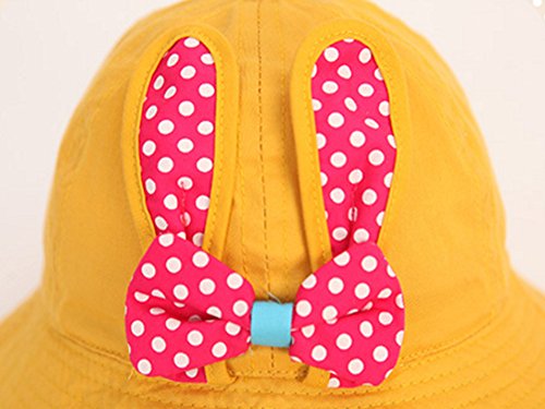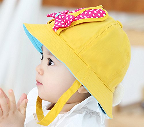 【SEBLES】ベビー 赤ちゃん 帽子 ハット サファリハット あご紐 子ども 子供 日差し UV コットン 綿 うさぎ 尻尾 リボン 春 夏 秋 ユニセックス 男の子 女の子(イエロー)