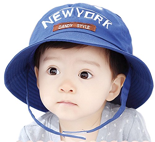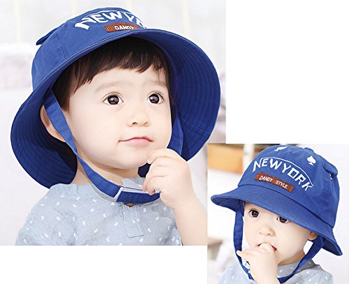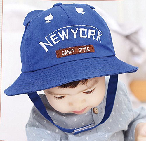 【SEBLES】ベビー 赤ちゃん 帽子 ハット サファリハット あご紐 子ども 子供 日差し UV コットン 綿 無地 ロゴ 耳 春 夏 秋 ユニセックス 男の子 女の子(ブルー,1-2歳)