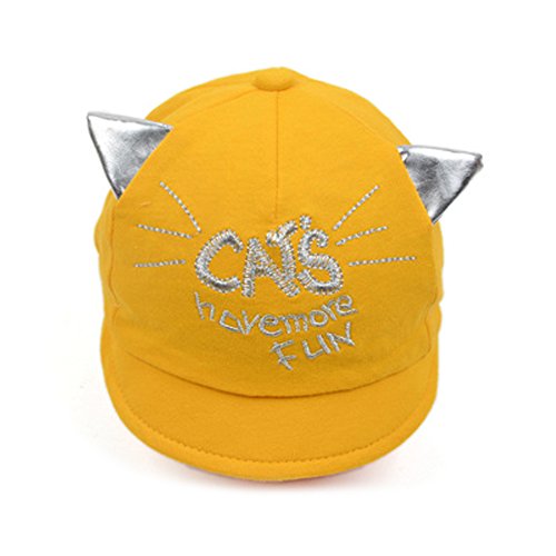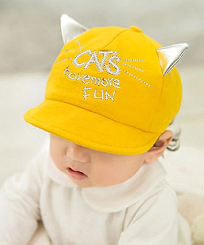 【SEBLES】ベビー 赤ちゃん 帽子 キャップ 子ども 子供 日差し UV 無地 コットン 綿 猫 ねこ 耳 キャット 春 夏 秋 ユニセックス 男の子 女の子 ユニセックス 6ヶ月-2歳(イエロー)