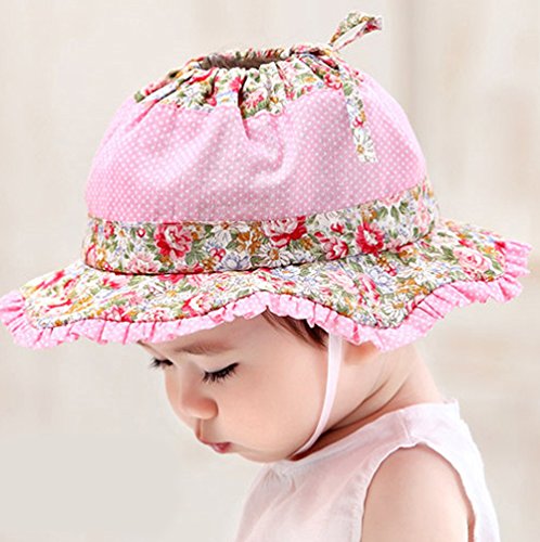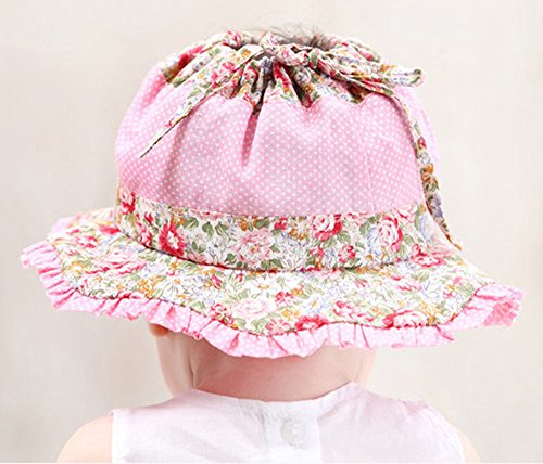 【SEBLES】ベビー 赤ちゃん 帽子 ハット フリル あご紐 子ども 子供 日差し UV 無地 コットン 綿 ドット 花柄 花 フラワー プリント 春 夏 秋 ユニセックス 女の子 1-3歳(タイプC)