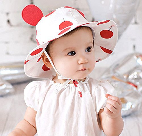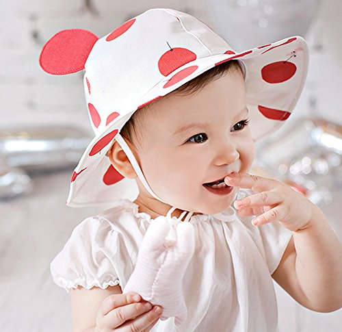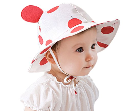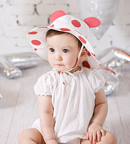 【SEBLES】ベビー 赤ちゃん 帽子 ハット 子ども 子供 日差し UV 無地 コットン 綿 ドット ホワイト 可愛い あご紐 耳 春 夏 秋 ユニセックス 女の子 6-12ヶ月(レッド)